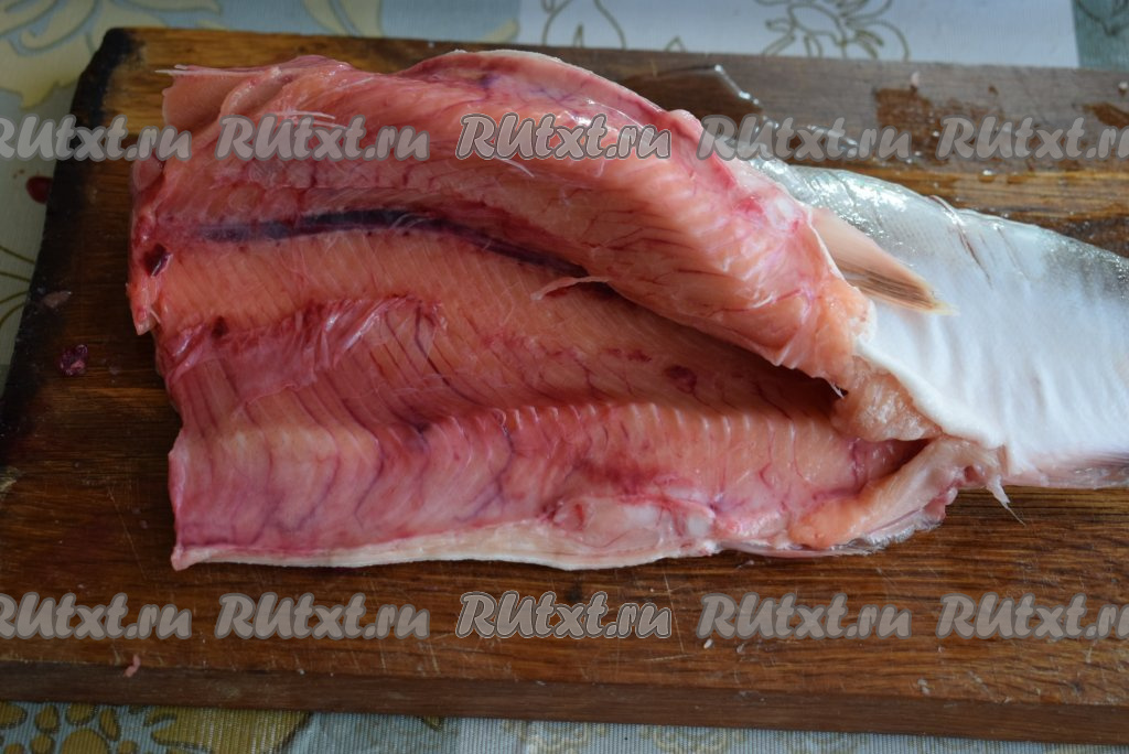 Горбушу чистим от чешуи и промываем под холодной водой.