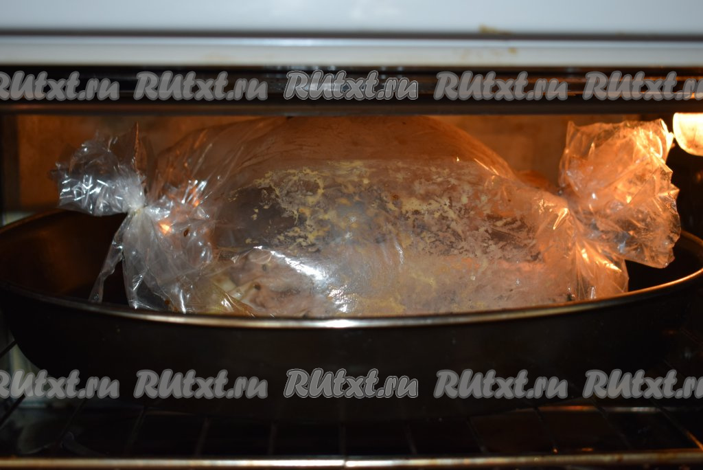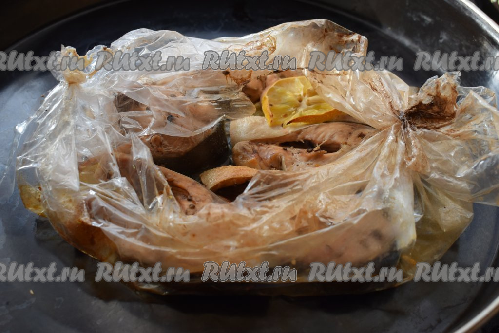 Отправляем противень в разогретую духовку. Запекаем горбушу в рукаве при температуре 180 градусов, примерно, 20 минут. Затем достаём противень, разрезаем рукав и запекаем горбушу ещё 10-12 минут.