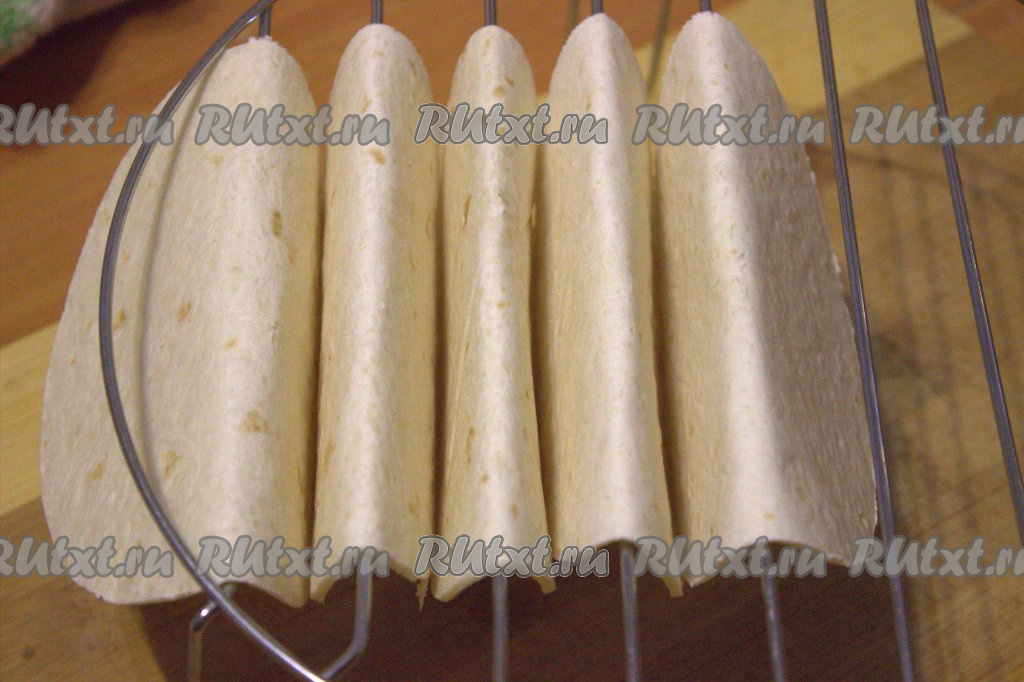 Выложить лепёшки на решётку так, чтобы они "висели", сгибаясь, примерно, по середине.