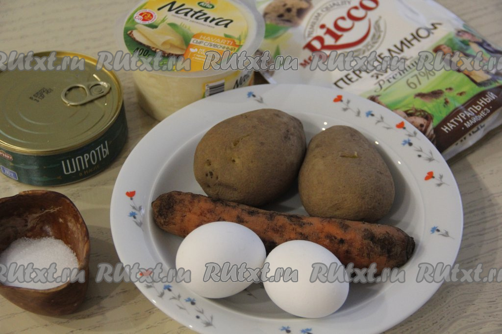 Предлагаю приготовить вкусный, нежнейший слоёный салат со шпротами, варёной картошкой, яйцами и морковью. Это блюдо украсит и праздничный стол, и повседневный ужин. Очень важно сформированному салату дать пропитаться в течение пары часов в холодильнике. Отличный салатик, попробуйте!