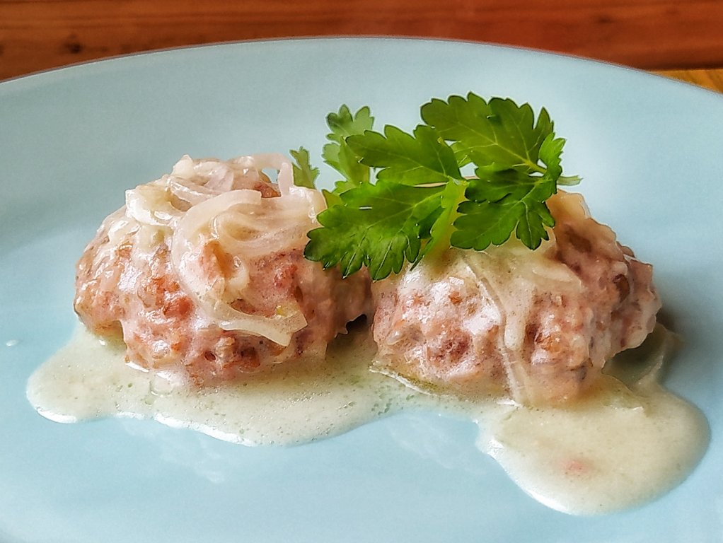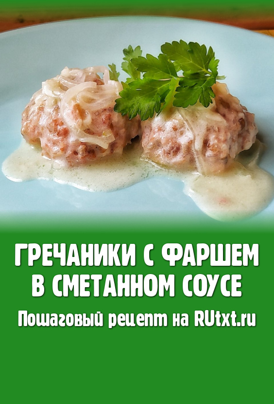 Вкусные, сочные гречаники с фаршем в сметанном соусе готовы, к столу подаём горячими или тёплыми.