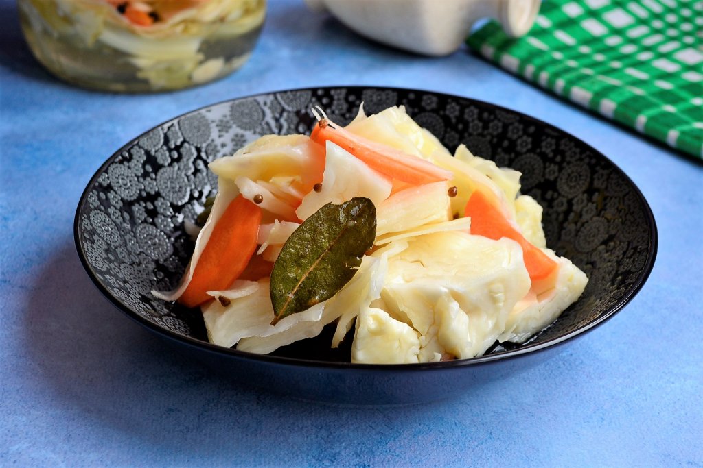 Банку накрыть крышкой и дать остыть. Затем капусту поместить в прохладное место на сутки. Всё, очень вкусную, хрустящую, кисло-сладкую "Пелюстку", приготовленную без свеклы, можно подавать к столу!