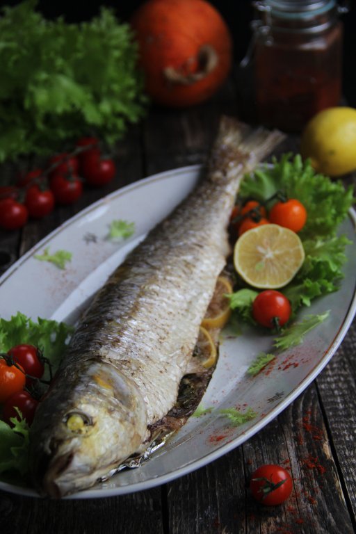 Затем достать кефаль из духовки, развернуть фольгу, дать немного остыть, переложить рыбу на тарелку и подать к столу, дополнив свежими овощами или любимым гарниром. Кефаль, запечённая целиком, получается сочной, нежной и очень вкусной.
