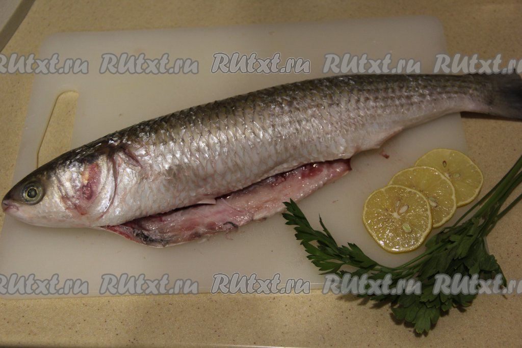 У меня кефаль не потрошёная. Я предварительно разморозила рыбу.
