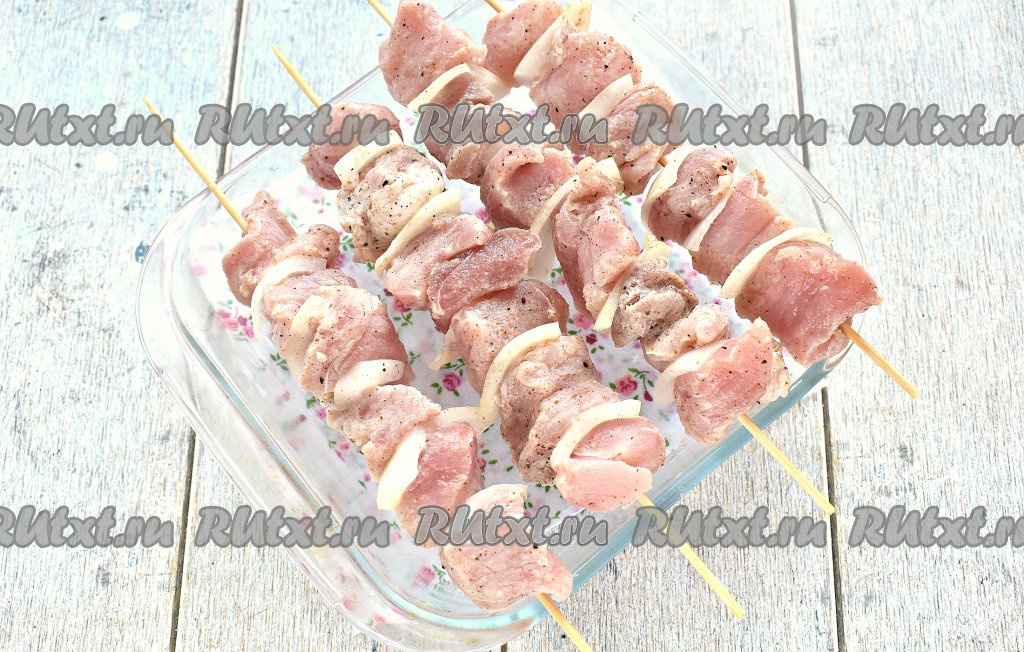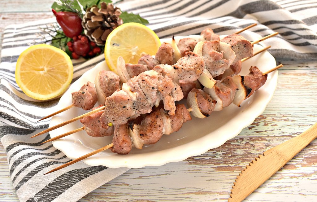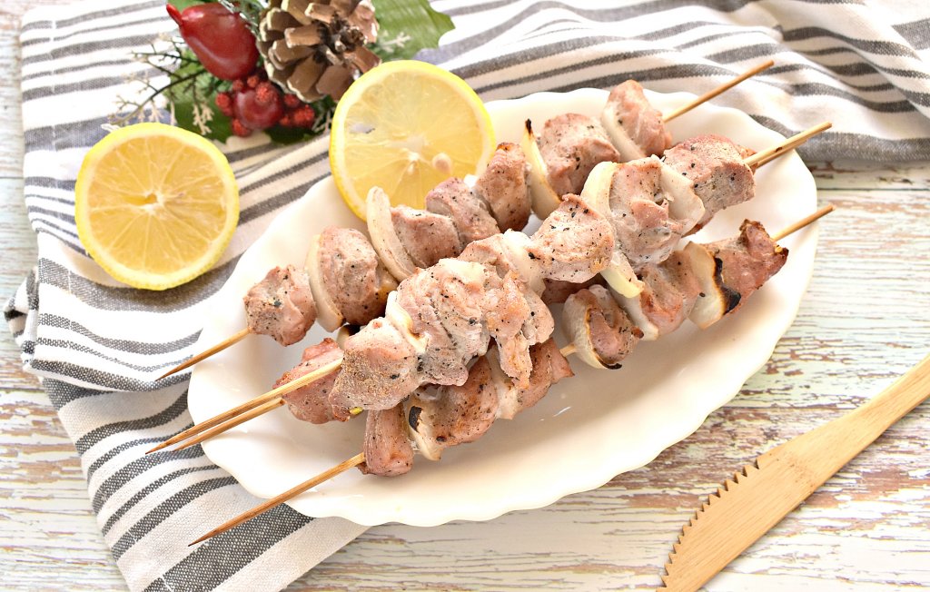 Если у вас нет возможности выехать на природу, а очень хочется порадовать себя и своих близких шашлыком из свинины, тогда приготовьте его на деревянных шпажках в духовке. Конечно, запечённое мясо не будет восхитительно пахнуть ароматом костра, но тем не менее получится очень сочным, мягким и вкусным. Мариновать мясо для шашлычков будем с репчатым луком, лимоном и специями. Для этого рецепта лучше всего подойдёт свинина с шейной части или грудинка. Чтобы шашлычок не был суховатым, можно взять мясо с небольшим количеством сала. Это блюдо можно подать и к праздничному, и к повседневному столу, дополнив овощами, свежей зеленью и любимыми соусами.