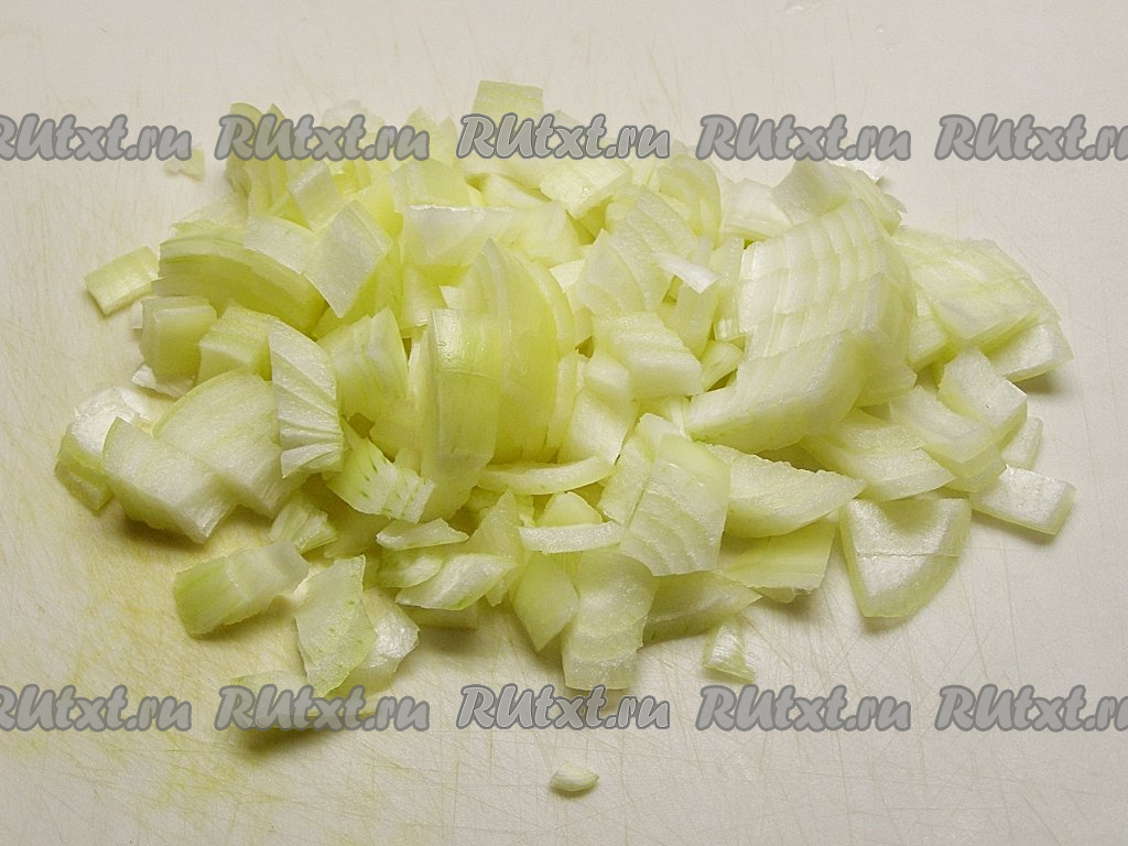 Луковицу чистим и нарезаем на кубики среднего размера.