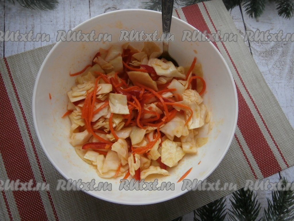Через час вкуснейшую, хрустящую капусту, маринованную по-корейски, можно подавать к столу. Вот так достаточно просто и быстро можно приготовить замечательную закуску. Хранить такую капусту можно в течение нескольких дней в закрытой таре.