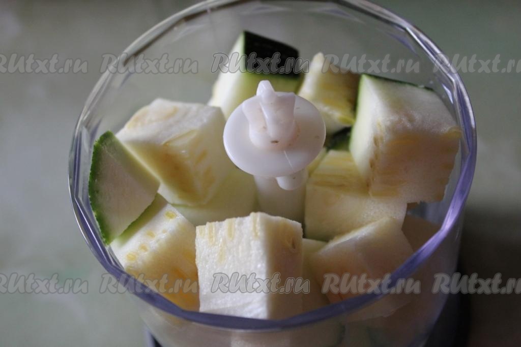 Измельчите кусочки кабачка или цуккини в блендере для получения 1,5 стаканов по объёму.
