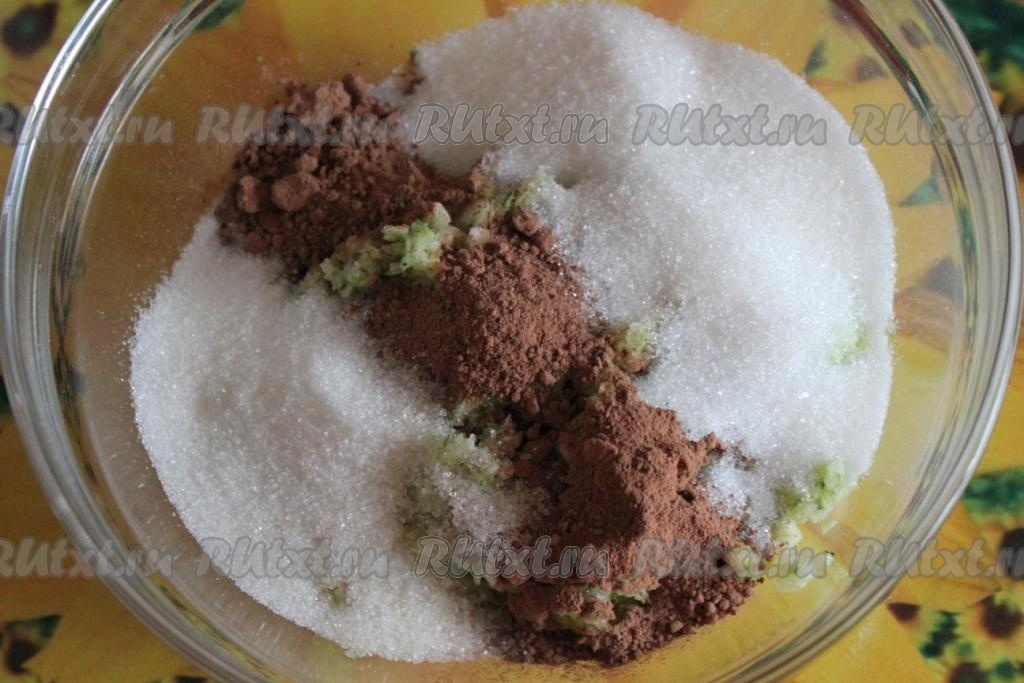 Добавьте сахар, ванильный сахар, какао и перемешайте.