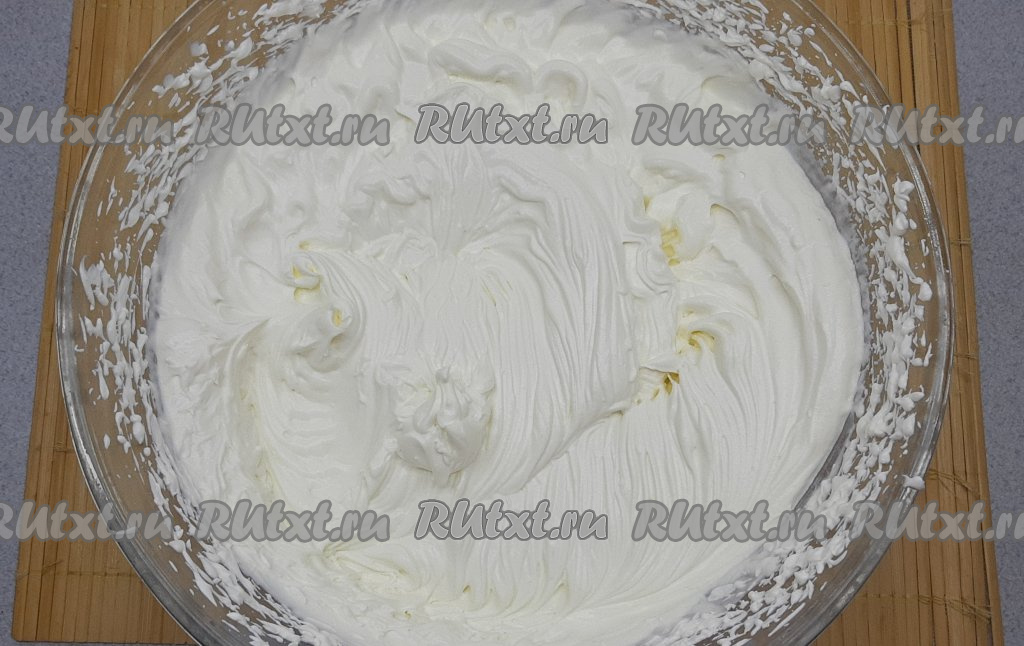 Обязательно добавляю 1 грамм ванилина (или пакетик ванильного сахара) и взбиваю крем до стойких пиков. У меня в общей сложности на взбивание крема уходит 15 минут, но всё зависит от вашего миксера. Главное - не перебить крем, иначе он сделается крупинками. Он должен быть плотным, воздушным, с чёткими узорами и гладким.