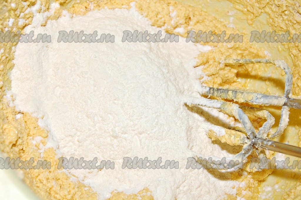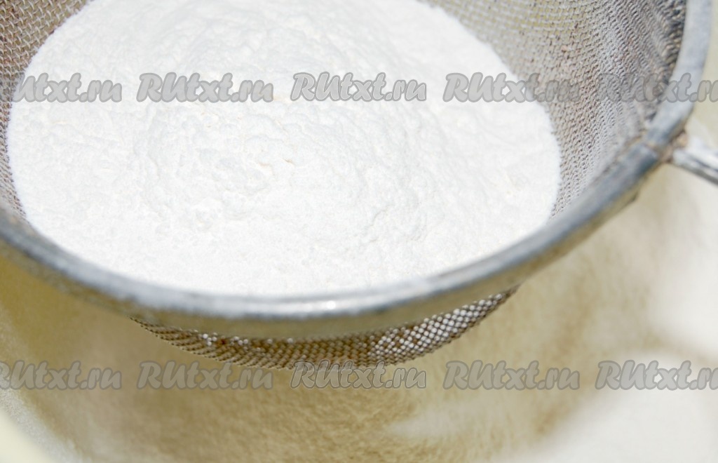 Муку соединить с разрыхлителем и солью, пропустить через сито.