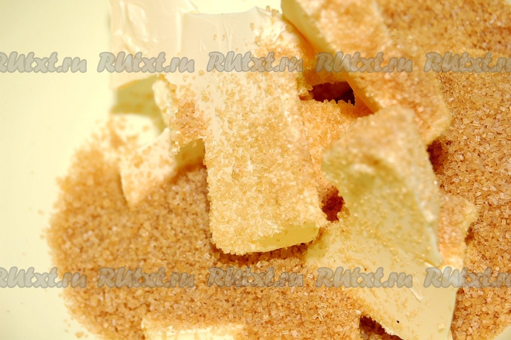 Положить в миску масло сливочное комнатной температуры, всыпать сахар (я добавила белый и коричневый сахар).