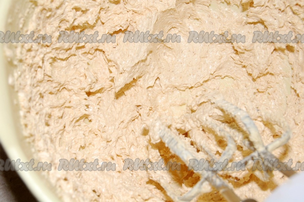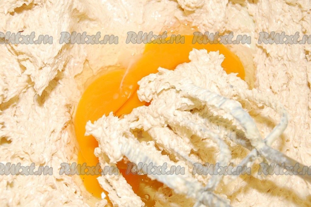 Добавить яйца по одному, каждый раз тщательно взбивая миксером.