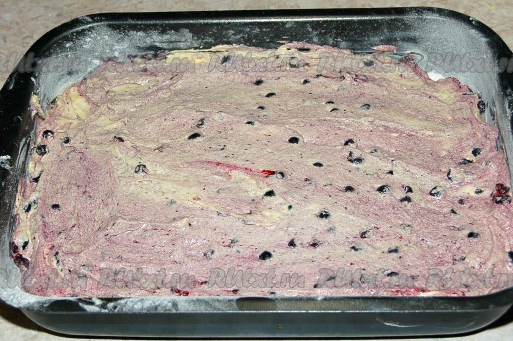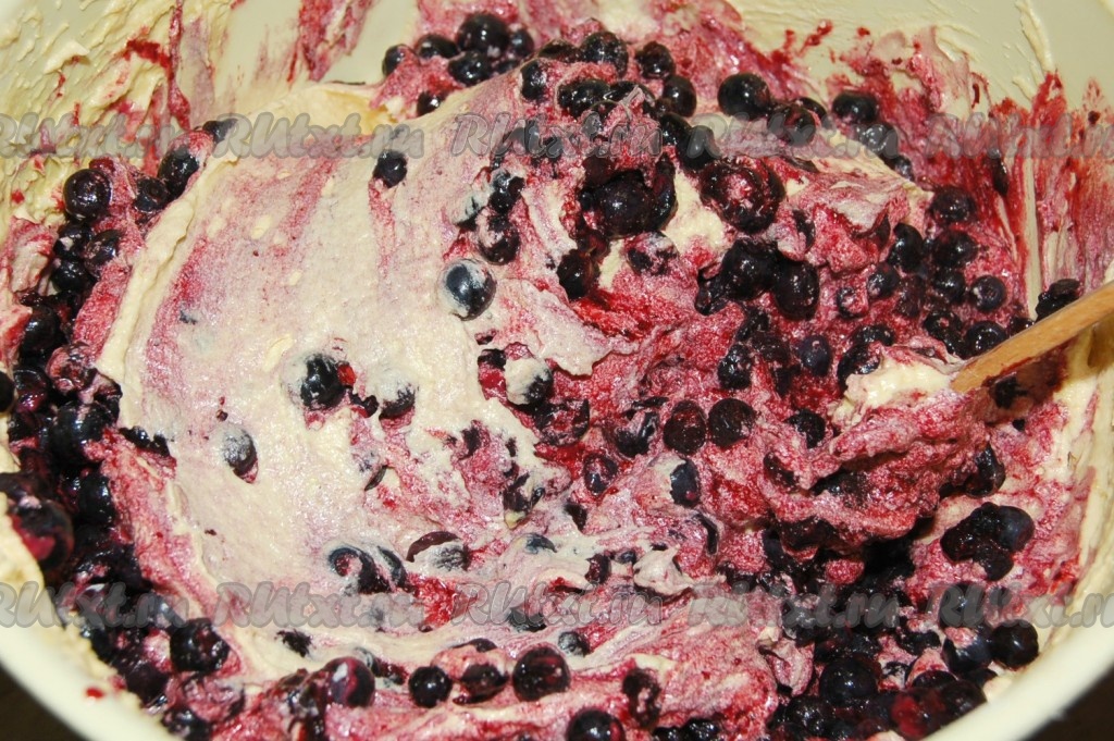 Обсыпанную мукой чернику добавить в тесто и аккуратно перемешать.