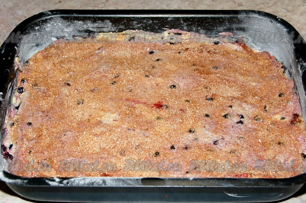 Посыпать верх черничного пирога смесью сахара с корицей.