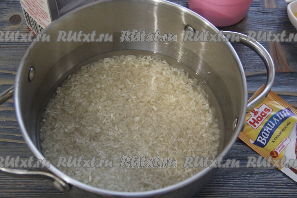 Дать молоку закипеть, а затем варить на медленном огне, иногда перемешивая, до разваривания риса. Рис разный, поэтому на разваривание риса в молоке потребуется от 20 до 40 минут. У меня в этот раз рис разварился за 40 минут. Получится жидкая каша, снять с огня. В небольшой ёмкости соединить крахмал, 50 мл молока, яичный желток и ванилин.