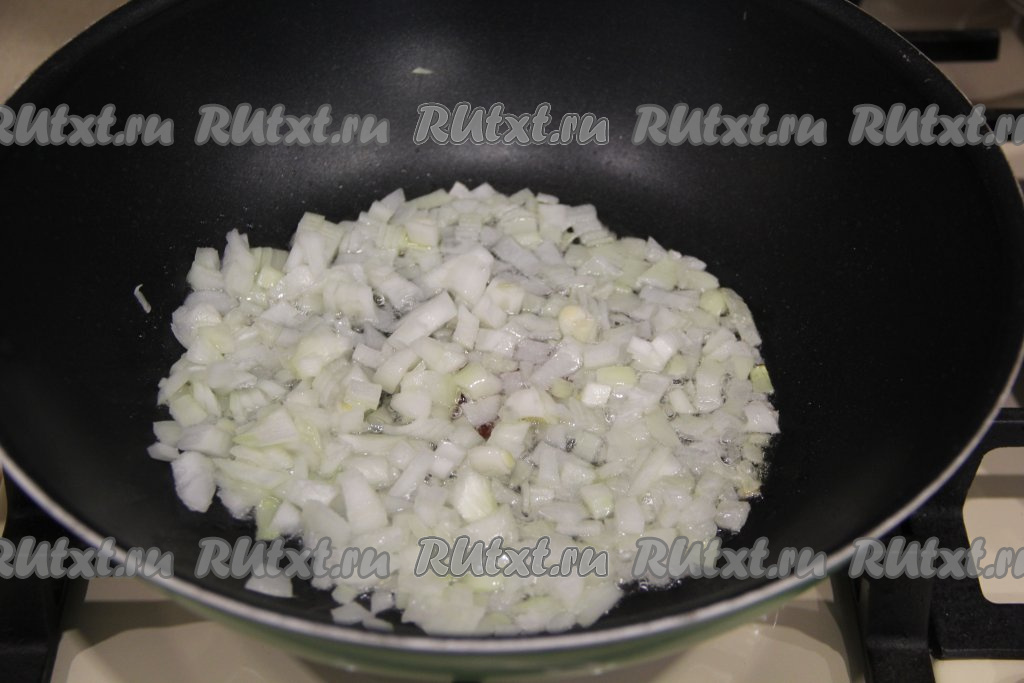 Очистить и достаточно мелко нарезать лук. В сковороду с высокими бортиками влить масло, немного прогреть его на среднем огне, затем выложить лук.