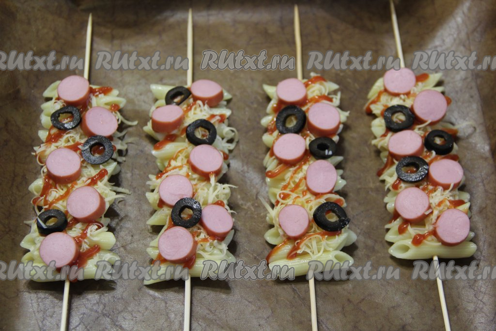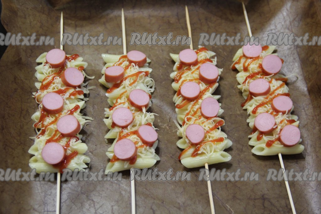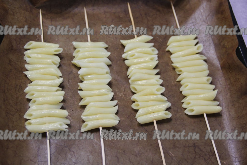 Макароны на каждой шпажке должны быть плотно прижаты друг к другу.