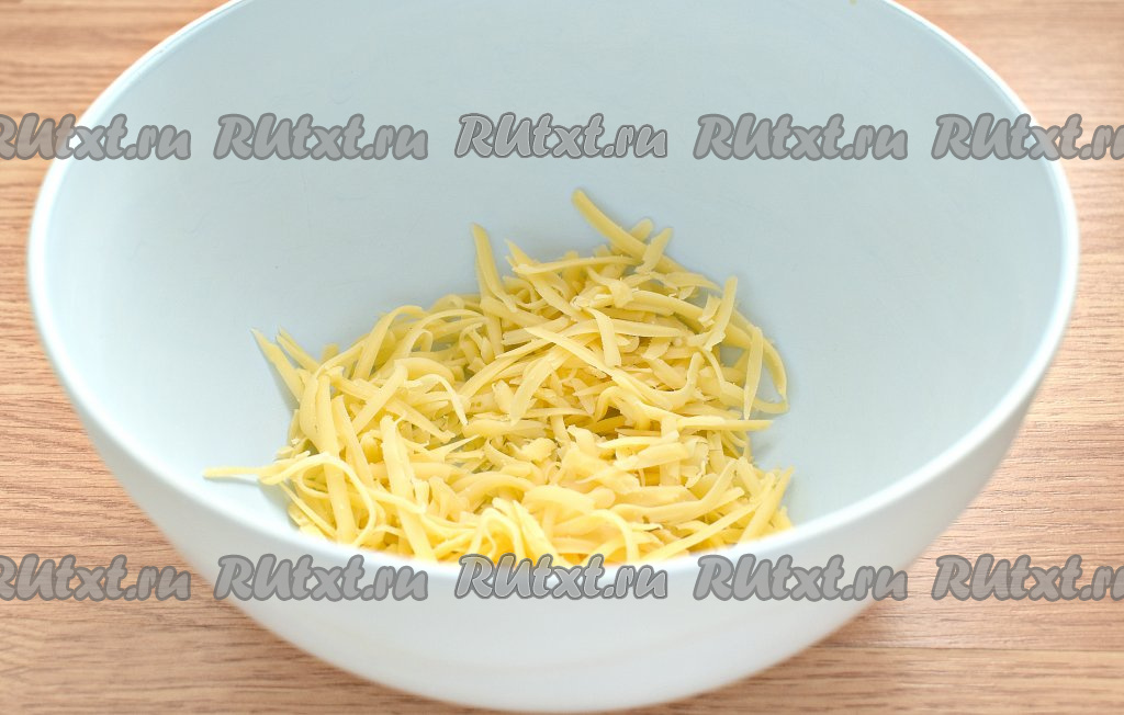 В достаточно объёмный салатник натираем на крупной тёрке сыр.