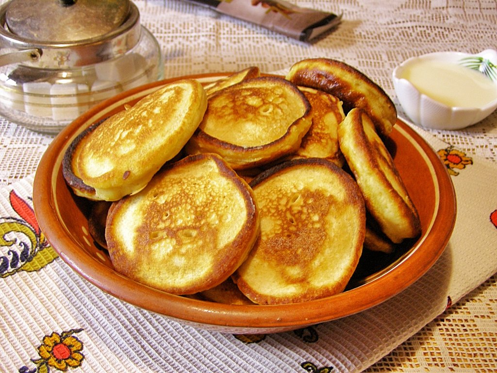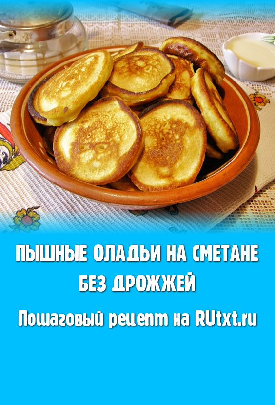 Оладьи, замешанные на сметане без добавления дрожжей, получились пышными, воздушными и очень вкусными. Подавать их лучше сразу после приготовления, тёплыми, дополнив любимым сладким соусом.