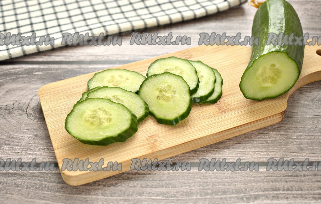 Промываем огурец, нарезаем его на тонкие кружочки.