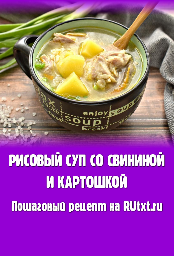 Предлагаю к обеду сварить наваристый суп с рисом и картошкой. Бульон для рисового супа приготовим из свинины (я использовала мясо на кости). Блюдо получается в меру густым, аппетитным и очень вкусным. Я подаю рисовый суп со свининой к столу, дополнив сметаной или майонезом.
