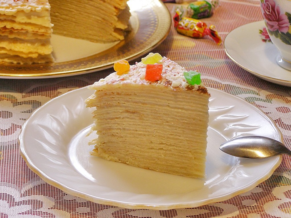 Предлагаю вам рецепт очень вкусного торта из домашних вафель с заварным кремом. Получается такой торт нежным, мягким, в меру сладким, с тонким ароматом мёда, а неровные края вафельных коржей придают такому тортику особенный, интересный вид. Готовится он несложно, из простых и доступных продуктов. Украсить торт можно на свой вкус, используя кондитерскую посыпку, шоколадную крошку, свежие фрукты или ягоды, а также цукаты и мармелад. Торт из домашних вафель станет украшением и повседневного, и праздничного чаепития!