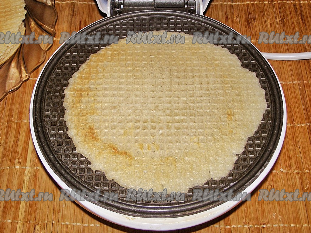Жарим вафлю, примерно, 2 минуты (до светло-золотистого цвета).