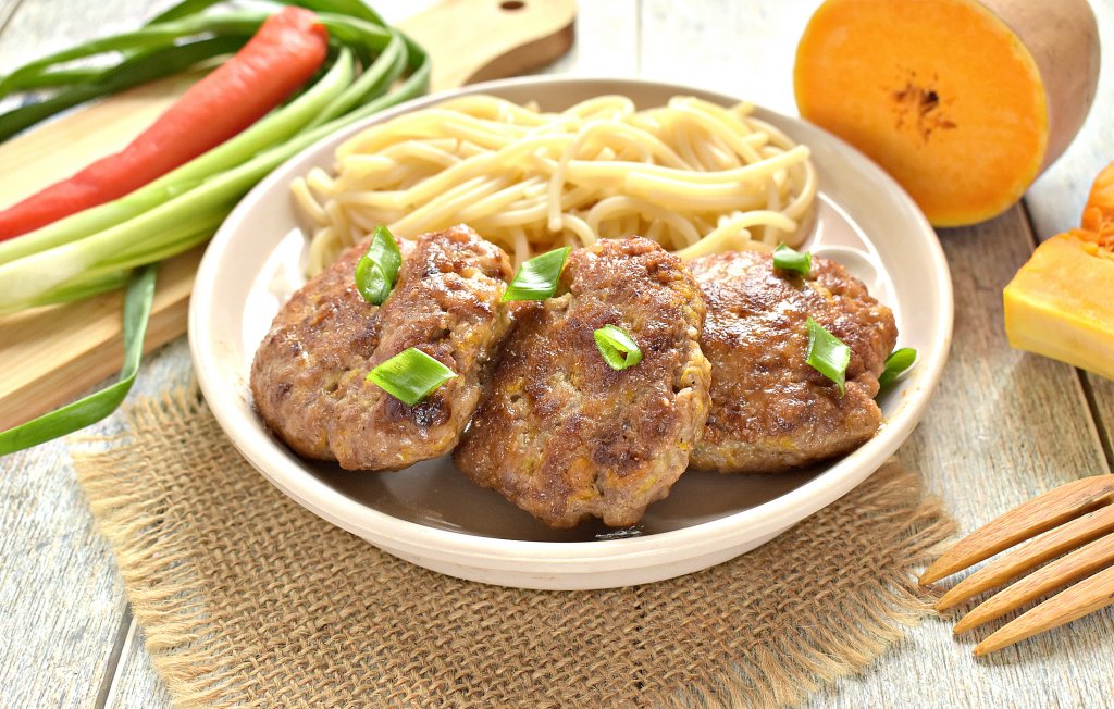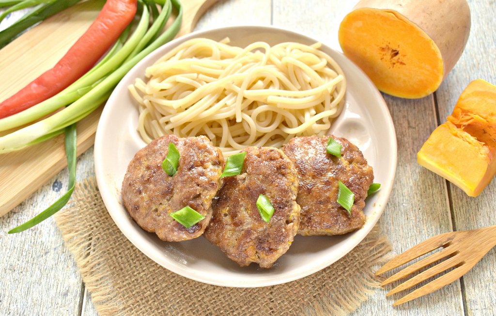 Из мясного фарша можно приготовить на сковороде котлеты по самым разнообразным рецептам. В этот раз я предлагаю сделать котлеты из фарша с добавлением натёртой тыквы. Такие котлетки получаются очень сочными, мягкими и аппетитными, к столу их можно подать практически с любым гарниром.