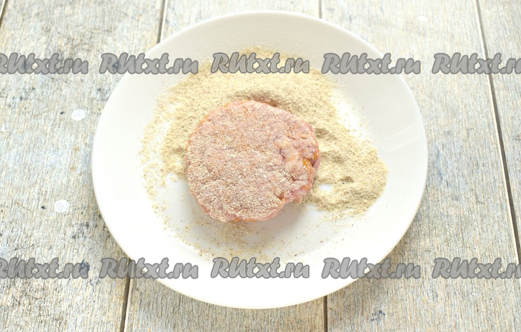 Лепим круглые или овальные котлетки и обваливаем их со всех сторон в панировочных сухарях. Всего у меня получилось 7 котлет.