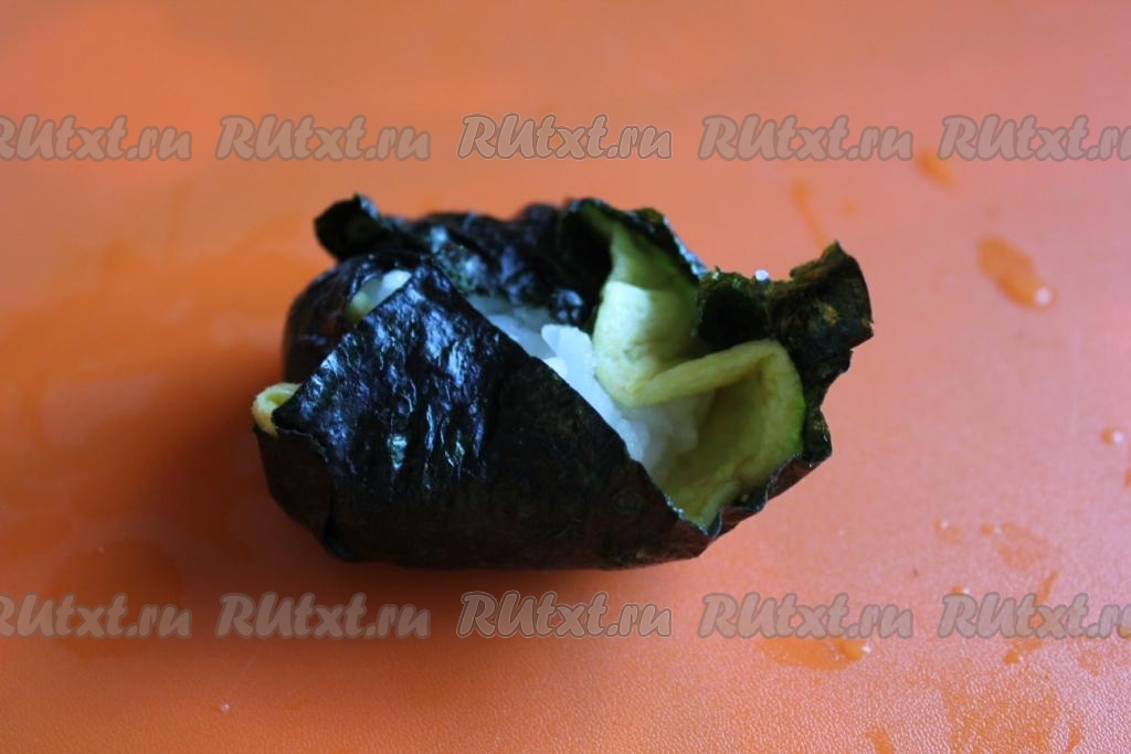 В результате получатся округлые суши, полностью закрытые нори.