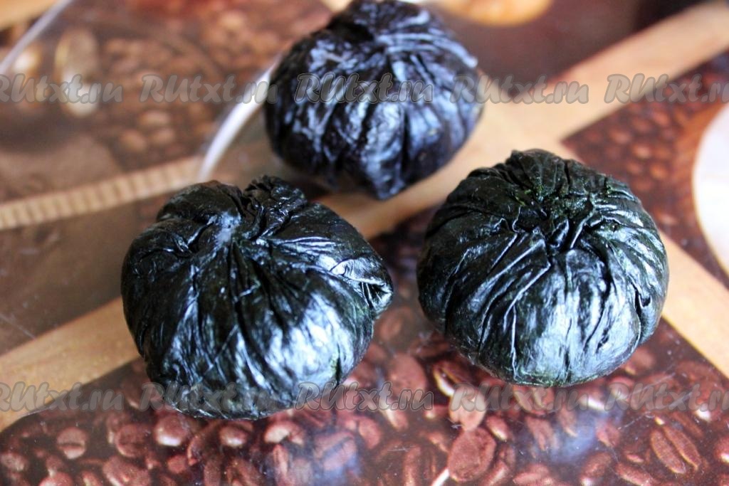 При помощи пищевой плёнки стяните и зафиксируйте форму дзакуро.