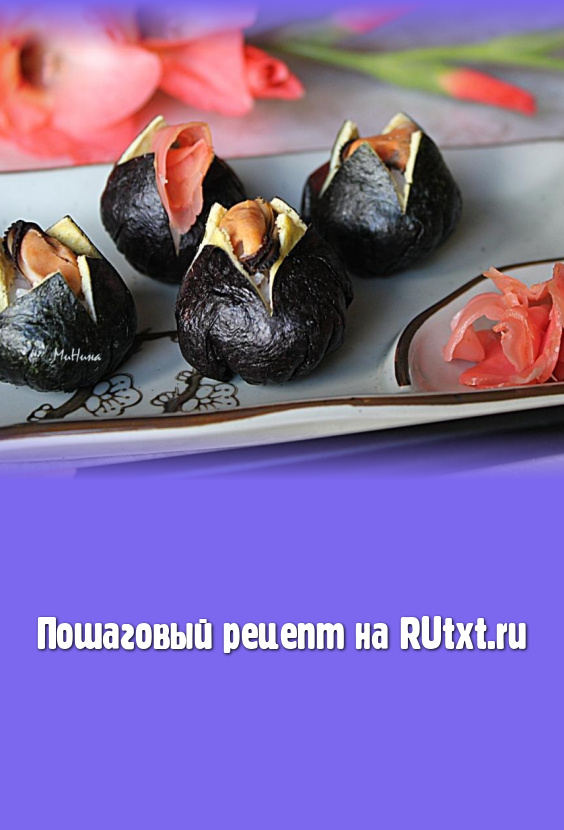 Суши дзакуро готовы. Подавайте их с маринованным имбирём и соевым соусом.