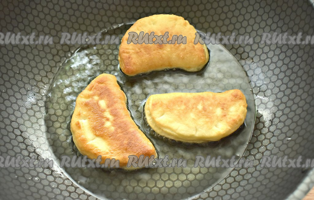 Большое количество масла разогреваем в глубокой сковороде. Выкладываем в горячее масло заготовки пышек. На огне чуть выше среднего жарим их с каждой стороны, примерно, по 2 минуты (до румяности).