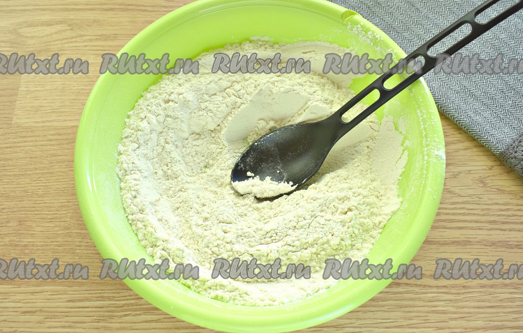 Дрожжи перемешиваем с просеянной мукой, образуя в центре воронку.