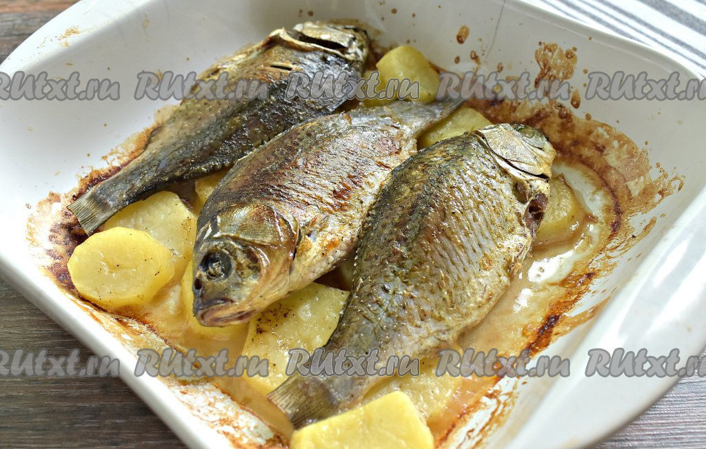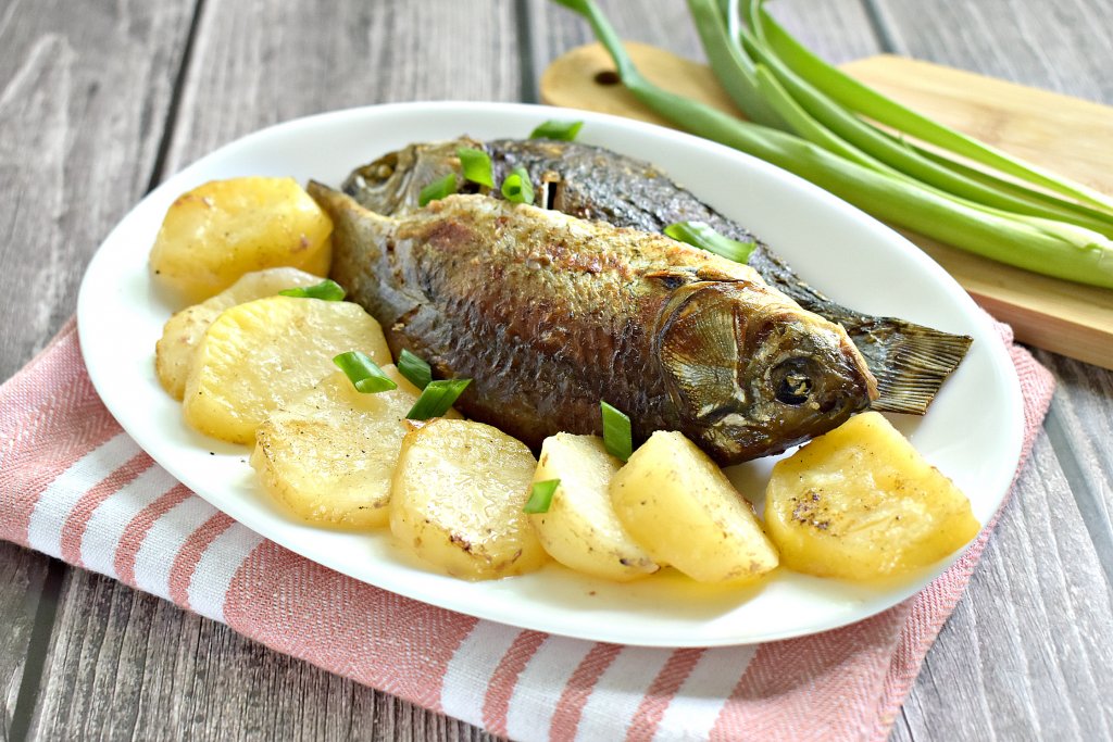 Мне нравится запекать карасей в духовке вместе с картошкой, ведь одновременно готовятся и рыбное блюдо, и гарнир к нему. Карасики, томлёные в духовке, получаются просто тающими во рту, с приятной золотистой корочкой, а картошечка становится рассыпчатой и нежной. Обязательно приготовьте запечённых карасиков по этому рецепту и насладитесь замечательным блюдом!