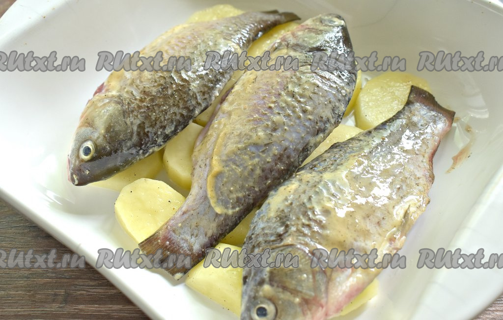 На картошку кладём замаринованных карасей.