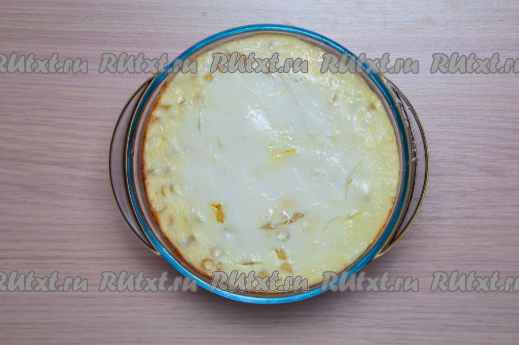 Духовку разогрейте до 180 градусов. Затем поставьте в духовку форму с заготовкой запеканки, готовьте минут 40 (до появления румяной корочки).