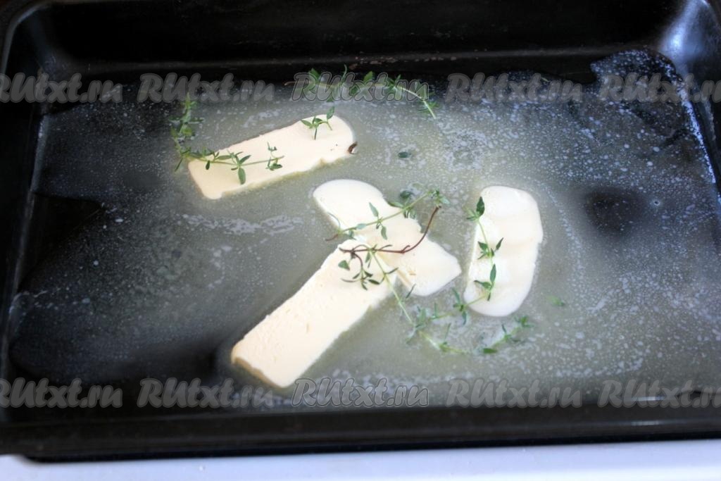 На противне или сковороде растопите сливочное масло, добавьте веточки тимьяна.