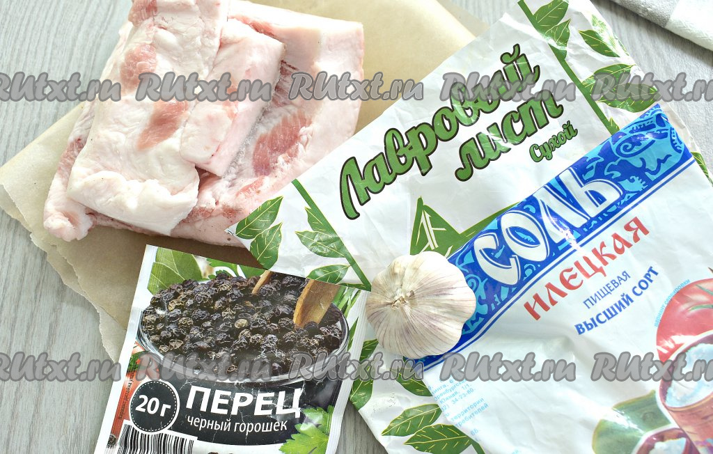 Подготовим нужные ингредиенты. Для засолки 500 грамм сала подойдёт банка объёмом 1 литр.