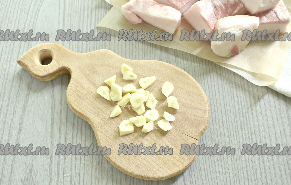 Очищаем зубчики чеснока и нарезаем их на крупные кусочки.