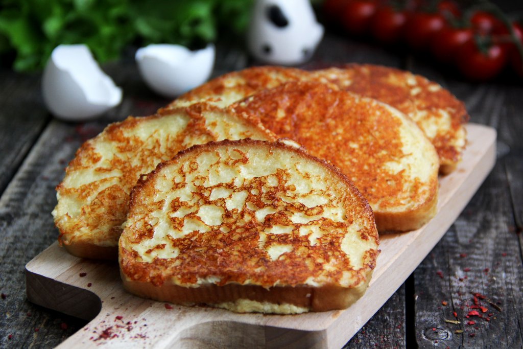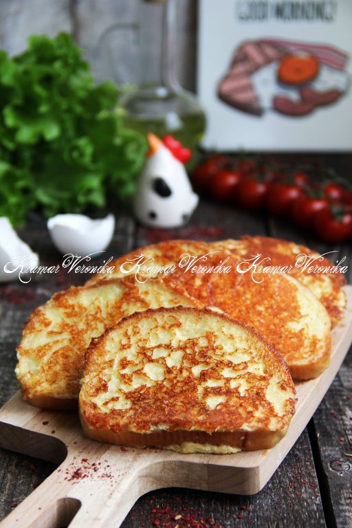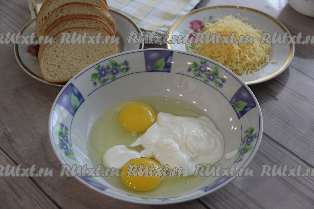 Ароматные, нежные гренки, приготовленные с яйцом, сметаной и сыром, подать к чашечке чая или кофе.