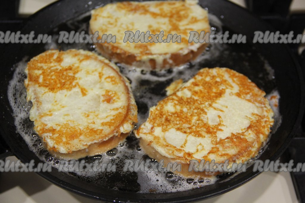 Жарить сырные гренки на сковороде с двух сторон до золотистого цвета.