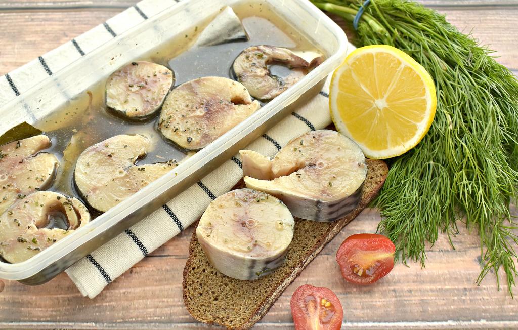Полностью заливаем рыбу охлаждённым рассолом. Контейнер закрываем крышкой и убираем скумбрию в холодильник. Через сутки можно снимать пробу.