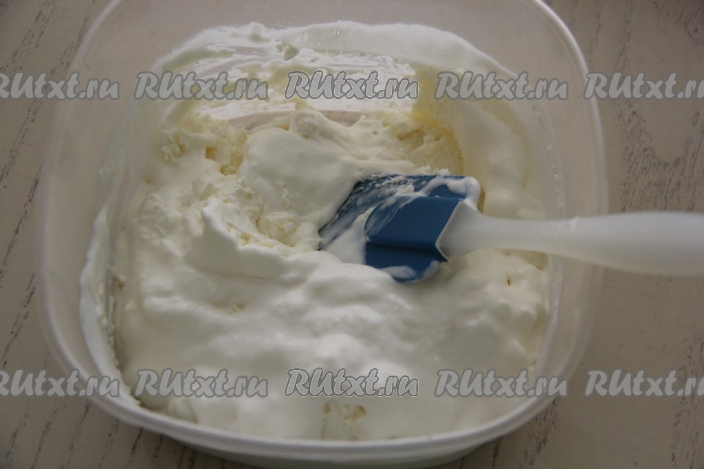 Готовую массу переложить в лоток, закрыть крышкой и поставить в морозилку. Можно разложить в специальные порционные формочки для мороженого.