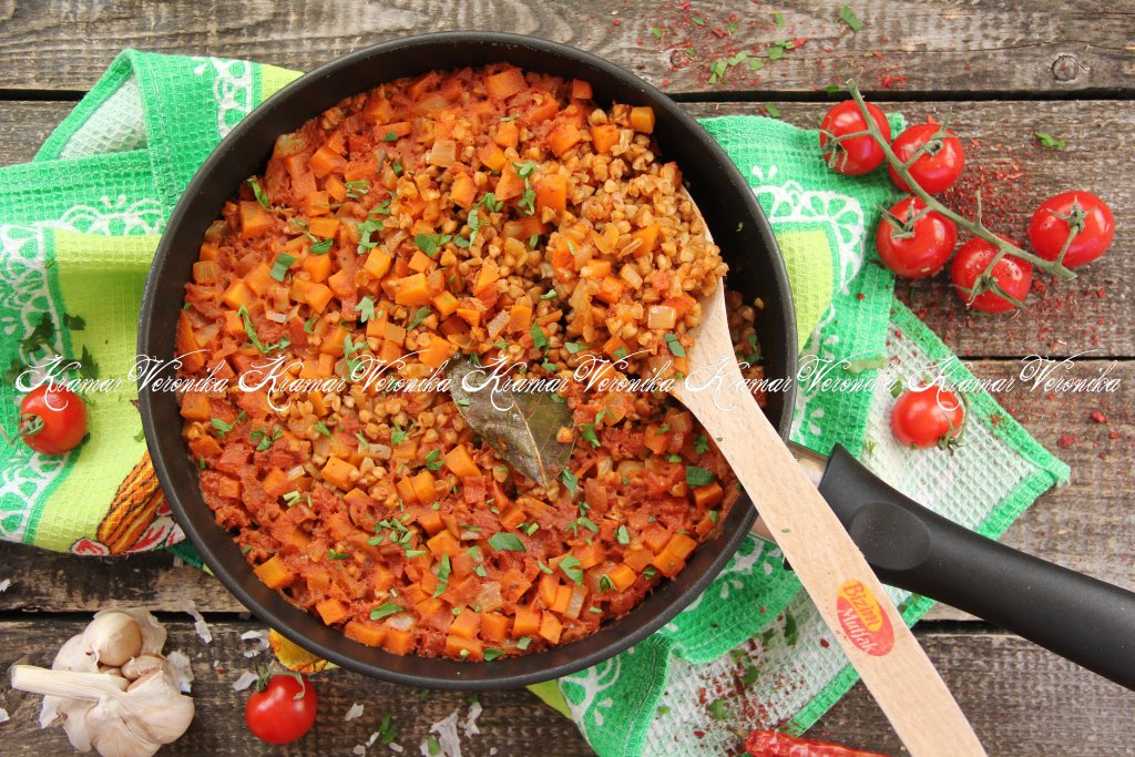 Предлагаю приготовить на сковороде вкусную, сытную, аппетитную гречку с помидорами, луком и морковью. Это насыщенное блюдо можно подать к столу в качестве гарнира к мясу, рыбе. Ну а в дни Поста такая гречка с выраженным томатным вкусом станет полноценным блюдом, которое при подаче можно дополнить, например, овощным салатом. Обязательно возьмите на заметку этот простой рецепт повседневного блюда!