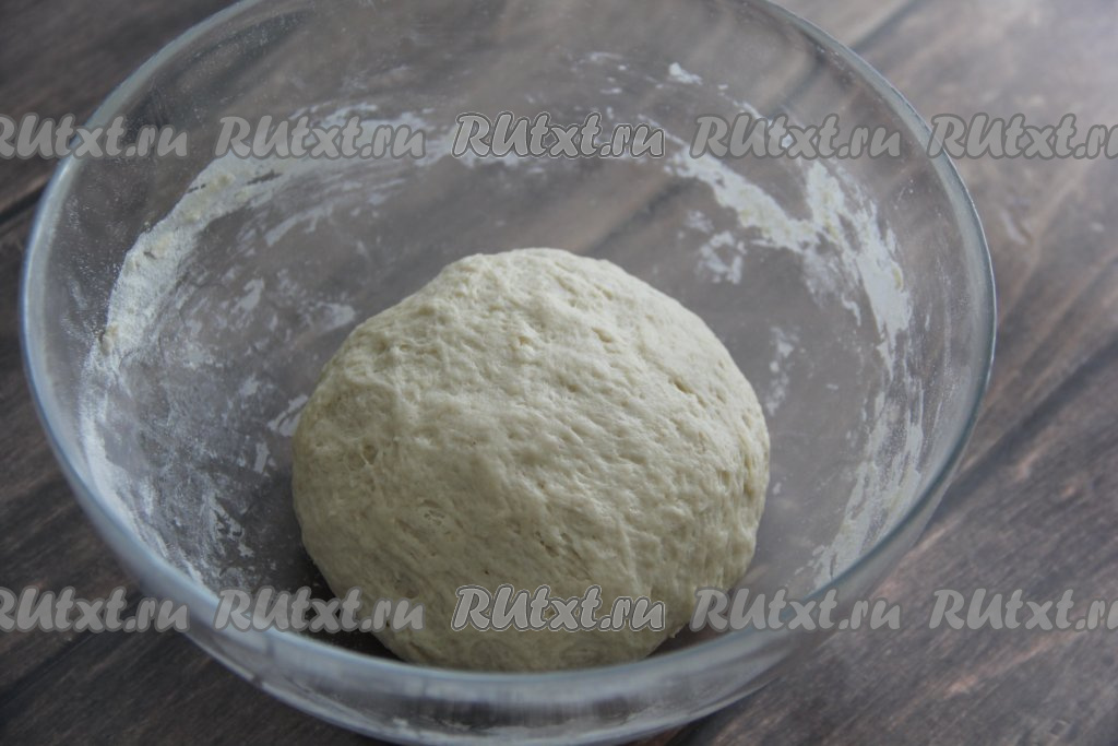 Замешанное тесто оставить в миске, накрыв пищевой плёнкой (или тканевым полотенцем).