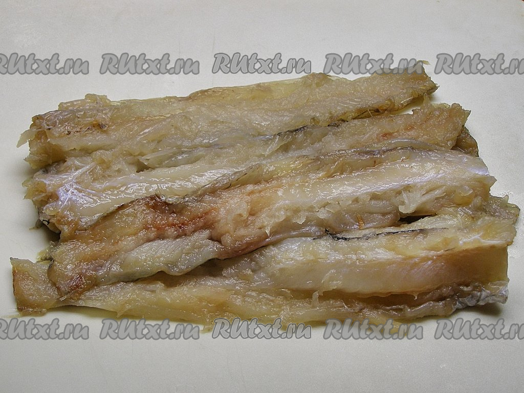 Если вы используете целую рыбу, её нужно вначале немного разморозить. Отрезаем от рыбы голову, хвост и плавники, по желанию, снимаем кожу. Удаляем внутренности вместе с чёрной плёночкой из брюшка. Затем разделяем рыбку на филе, удаляя хребтовую кость и более мелкие косточки. Для приготовления фрикаделек потребуется 400 грамм филе рыбы.