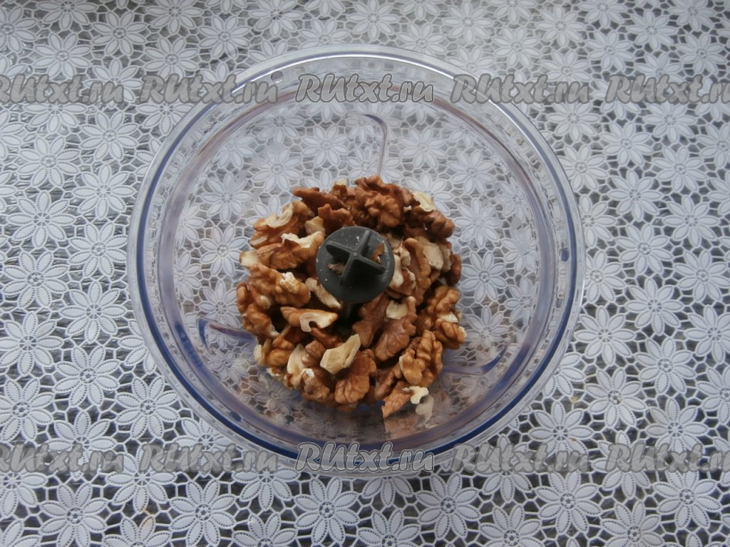 Очищенные грецкие орехи выложить в чашу блендера.