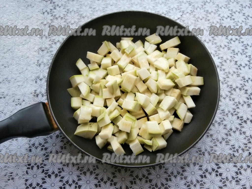 Укроп промыть, немного обсушить. Зубчики чеснока очистить. Кабачки вымыть, срезать "кончики" с двух сторон. Если кожура у кабачков жёсткая - лучше срежьте её, крупные семечки тоже нужно убрать. Если кожица у кабачка нежная, тогда можно её не срезать. Нарезать кабачки на средние кубики, выложить в сковороду, хорошо прогретую с растительным маслом, и обжаривать на среднем огне, периодически помешивая, до лёгкой румяности со всех сторон. Кабачки не должны стать мягкими, должны остаться чуть хрустящими.